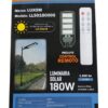 Reflector solar de 180W. Con fotocelda para encendido y apagado automático con la luz solar. Con sensor de movimiento. Incluye control remoto para ajustar diferentes funciones.